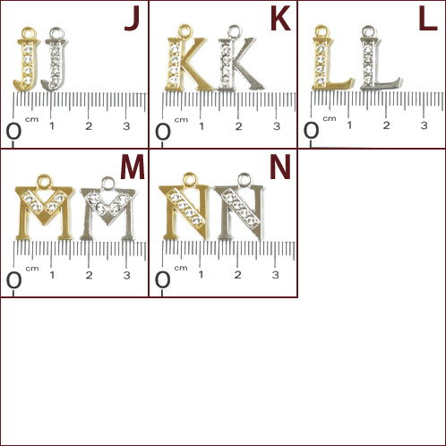 A〜N アルファベット イニシャル チャーム パーツ(2ヶ入)Swarovski ラインストーン ネックレス ブレスレット バックチェーン PRIMA LUCE PLUS プリマルーチェプラス