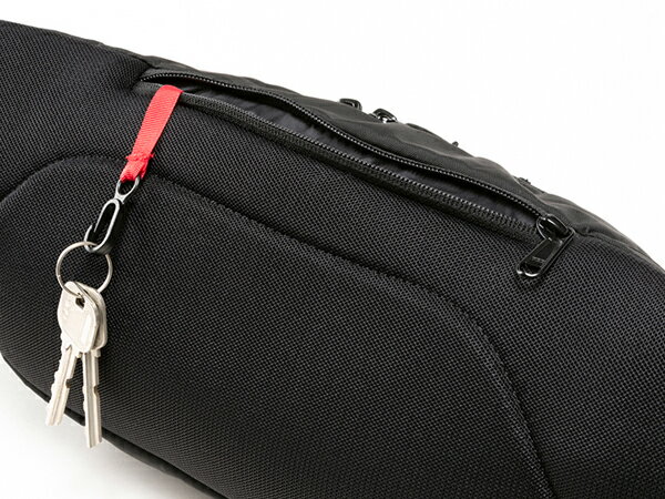 背面にキークリップ付きジッパーポケットを装備。