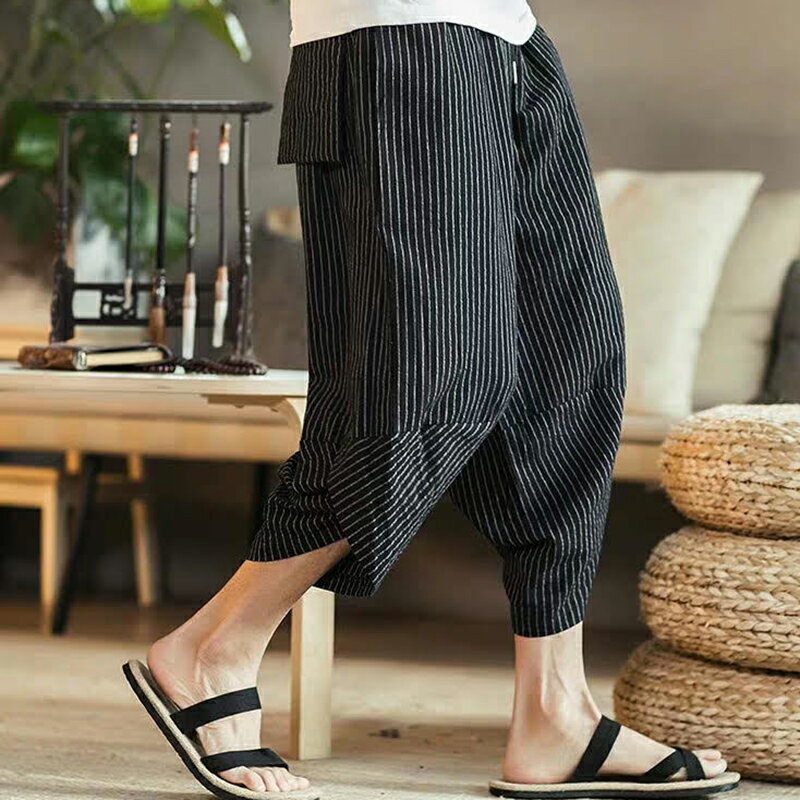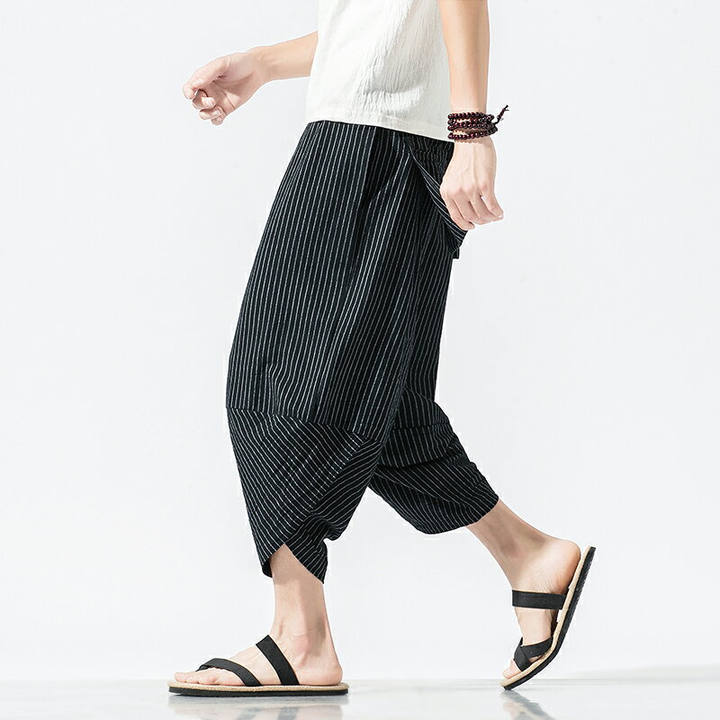 サルエルパンツ 大きいサイズ ハーフパンツ ショートパンツ メンズ 短パン 半パン ストライプ 九分丈 ゆったりパンツ ワイドパンツ 綿麻 リラックス パンツ 男性用 袴パンツ M L LL 2XL XXL 3XL XXXL 4XL 5XL