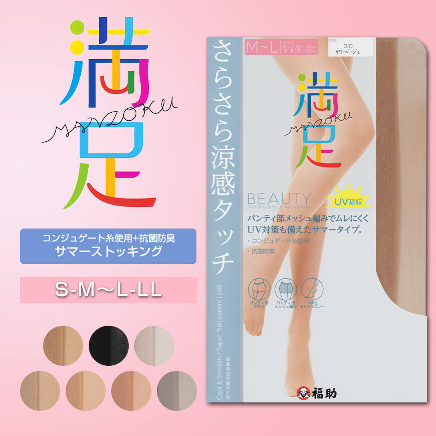 福助 満足 ストッキング 夏用 涼しい S-M〜L-LL (パンスト uv サマーストッキング 夏 レディース 履きやすい)【在庫限り】