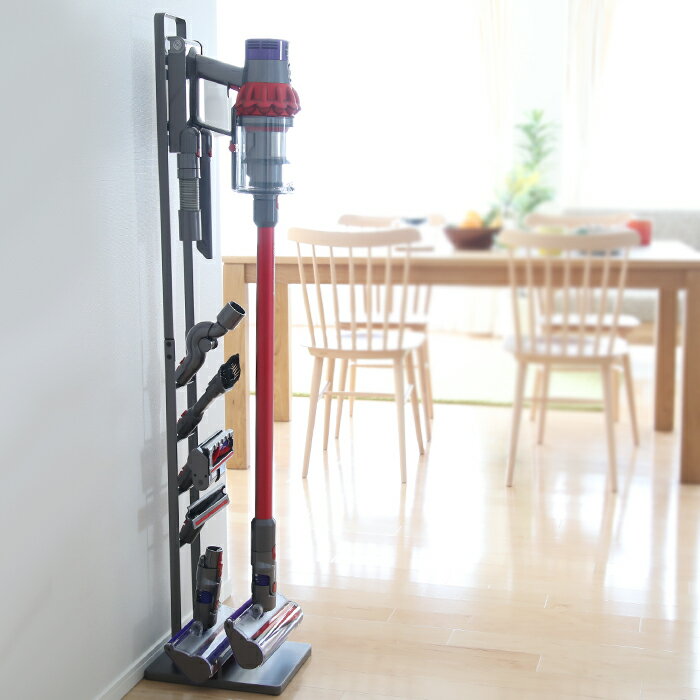 大人気の掃除機「dyson(ダイソン)コードレスクリーナー」と、ノズルやブラシなどのクリーナーツールをコンパクトにまとめて、きれいに収納できる「コードレスクリーナースタンド」。